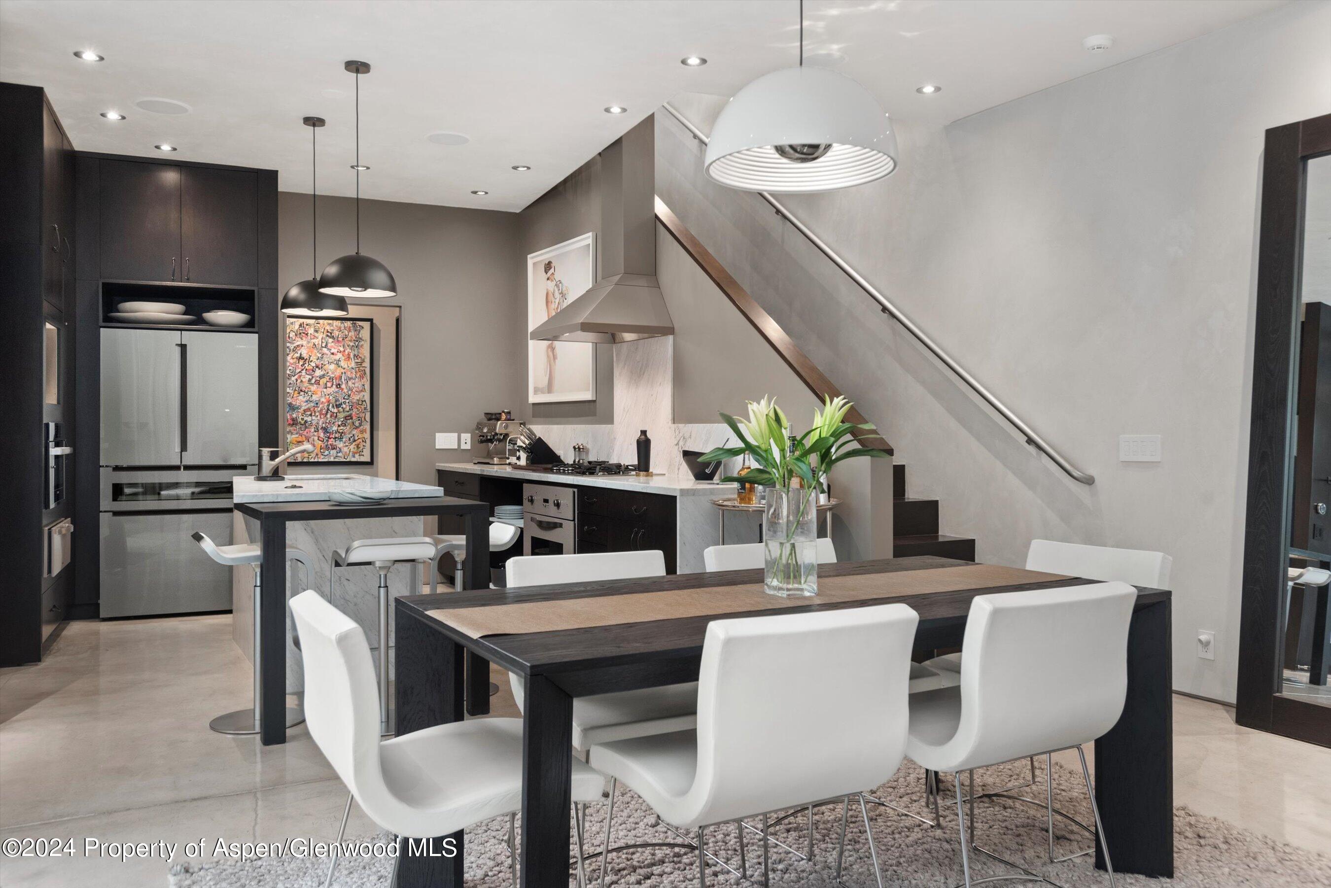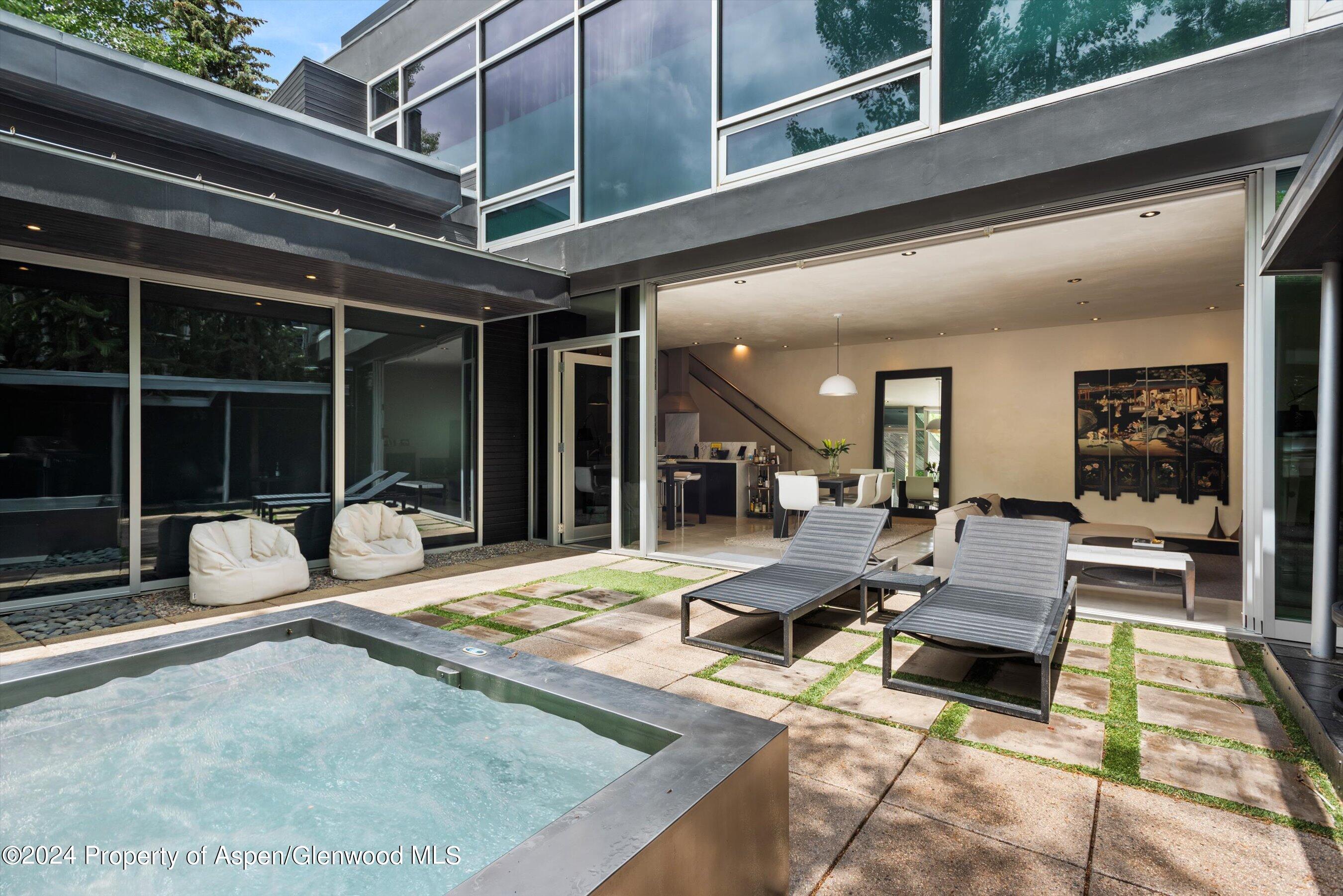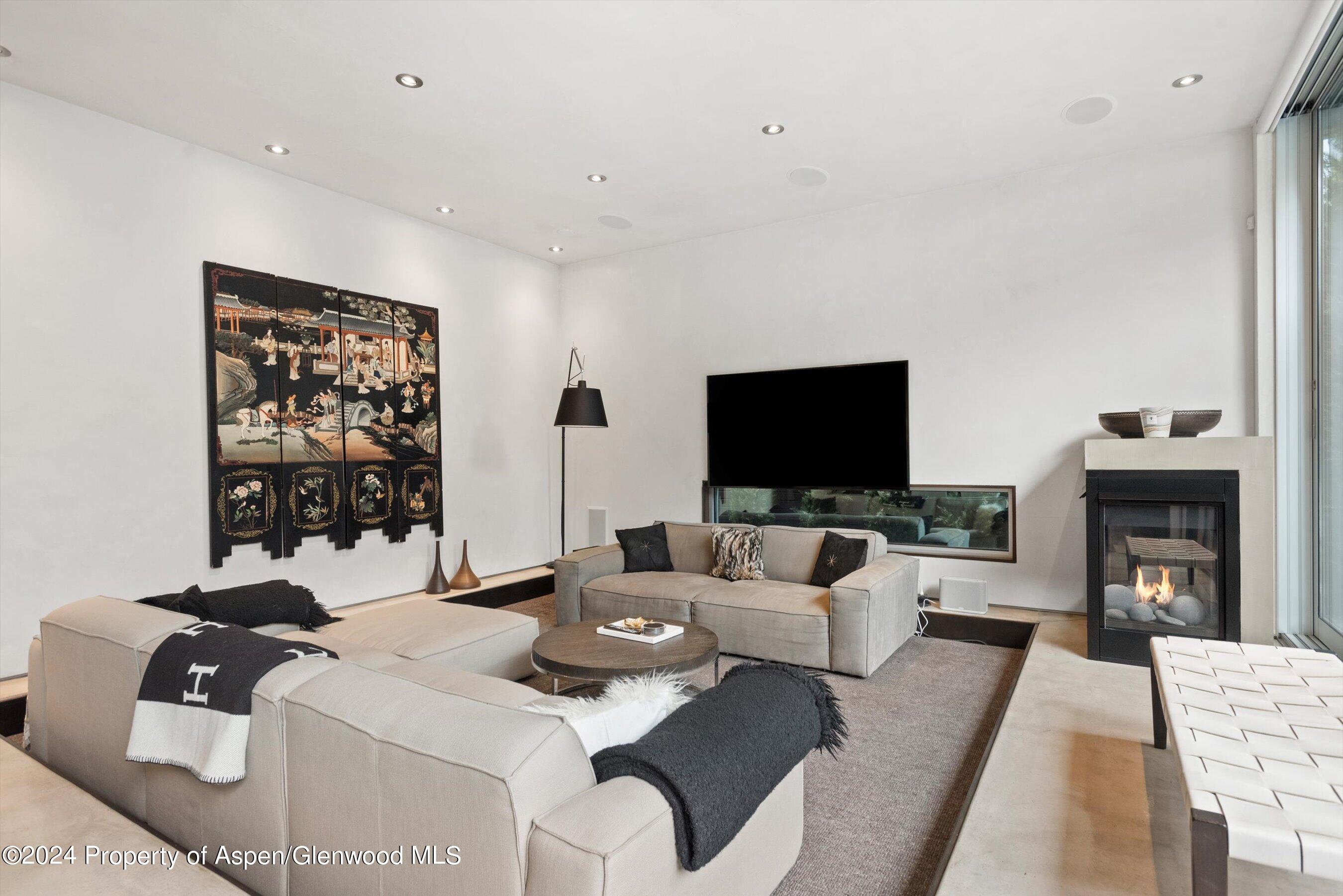 Welcome to 1180 Dale Avenue, located only steps away from the Roaring Fork river and downtown Aspen. As you walk through the private front gate, you enter a zen courtyard- with a stainless steel hot tub, gas grill and elegant cabana. As you continue on through floor-to-ceiling sliding glass doors, you enter a stunning, sleek, contemporary, and luxurious living room.