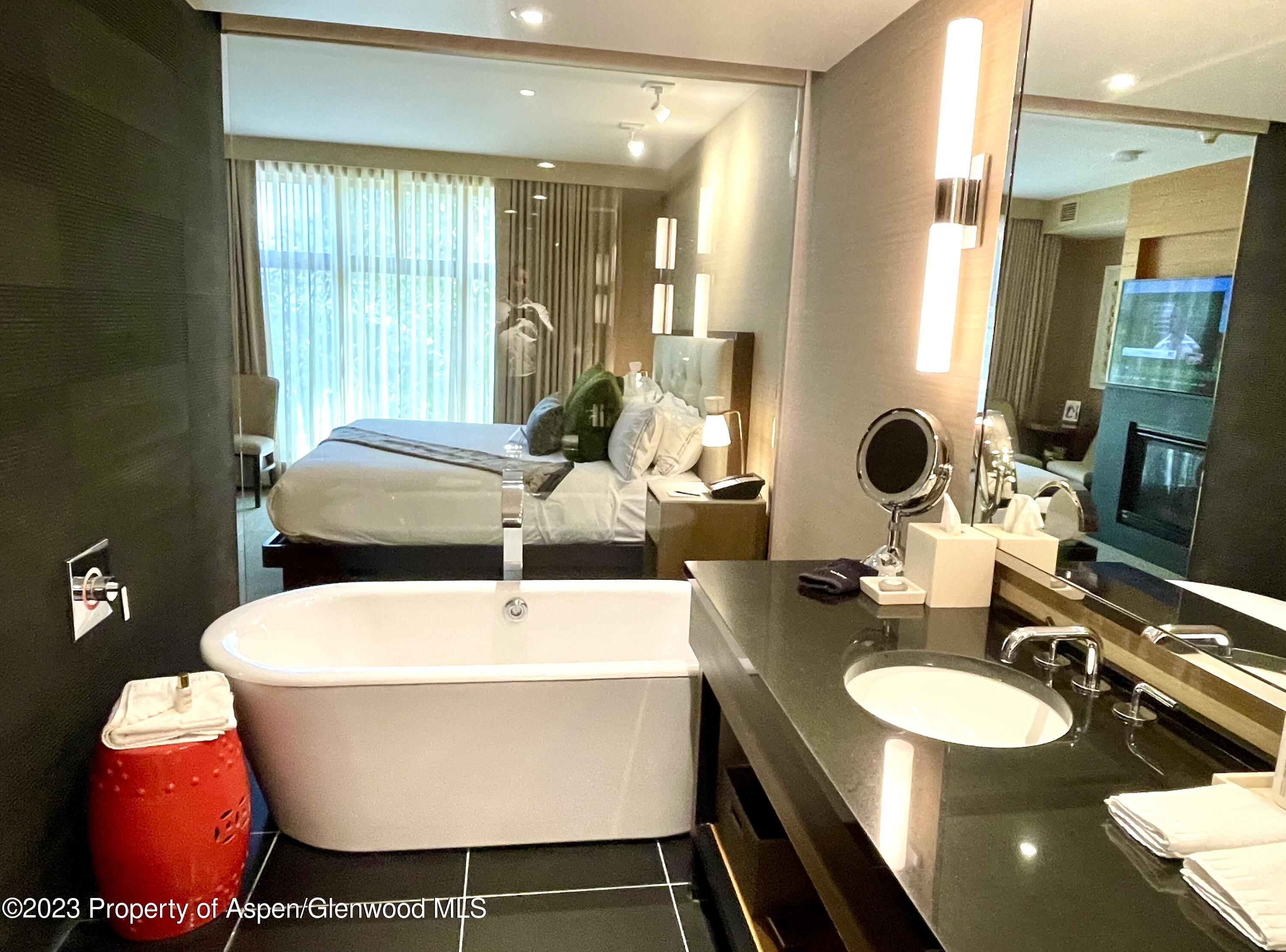 Experience effortless mountain luxury in this south-facing, sun-drenched studio at the Viceroy Snowmass -- offering panoramic mountain views and a front-row seat to the energy of Snowmass Base Village. This chic, king-bed residence features a striking glass-enclosed soaking tub that connects to the living space for a spa-like ambiance, with electric privacy blinds at the touch of a button.