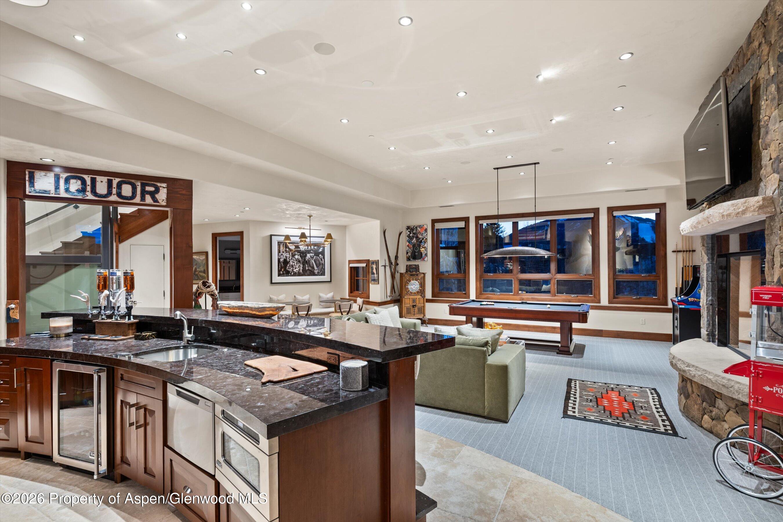 This masterfully designed lower Red Mountain estate features 6 expansive bedrooms with spa-inspired en-suite bathrooms, offering an unparalleled level of scale and sophistication. The residence is anchored by dual primary suites, two incomparable sanctuaries providing equal measures of privacy, luxury, and panoramic views. From the grand entrance, the silhouette of the Elk Range takes center stage, framing an artfully appointed living area and den. The open-concept kitchen, dining, and living areas are well-balanced, creating intentional spaces for both intimate gatherings and more formal events. The professional-grade kitchen is both a powerful tool in the hands of a culinary master and the epicenter of family gatherings. The lower level is the ultimate space for entertaining, featuring a bespoke bar and a sprawling lounge designed for hosting at any scale. This floor seamlessly integrates a private cinema, a sculptural glass elevator, and a sophisticated wine room. Even from this level, dramatic mountain views follow you around every corner. The living areas extend effortlessly outdoors to expansive terraces, where a custom spa is perfectly positioned to capture the romance of Red Mountain. Offering a front-row seat to the alpenglow and panoramic vistas, this space is the ultimate vantage point. The property effortlessly folds into the natural setting of salvation ditch and the surrounding natural cooridor. Complete with a spacious garage and a premier ADU perfect for guests or staff, this estate is a zen retreat that balances high-octane entertaining with serene mountain beauty.
