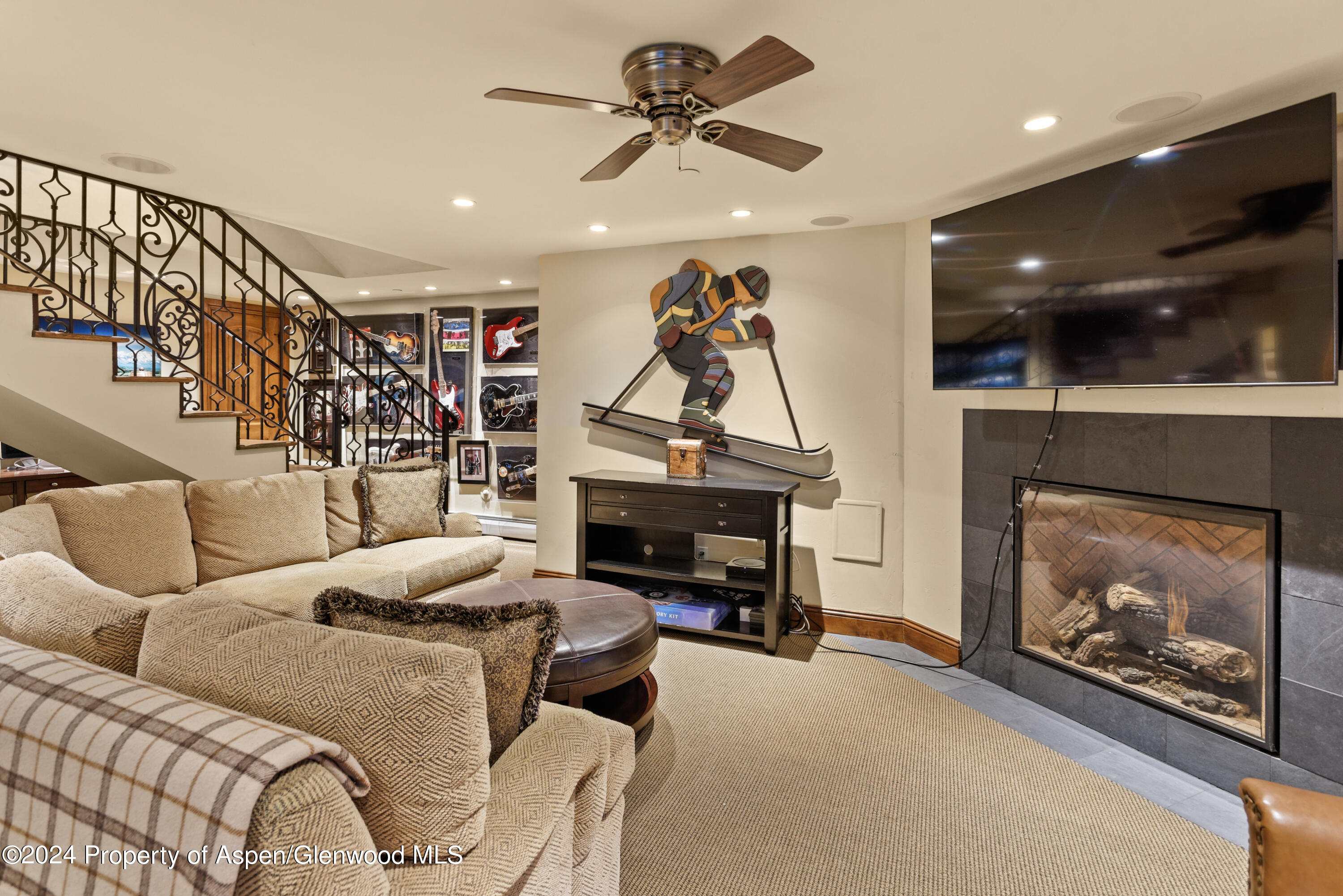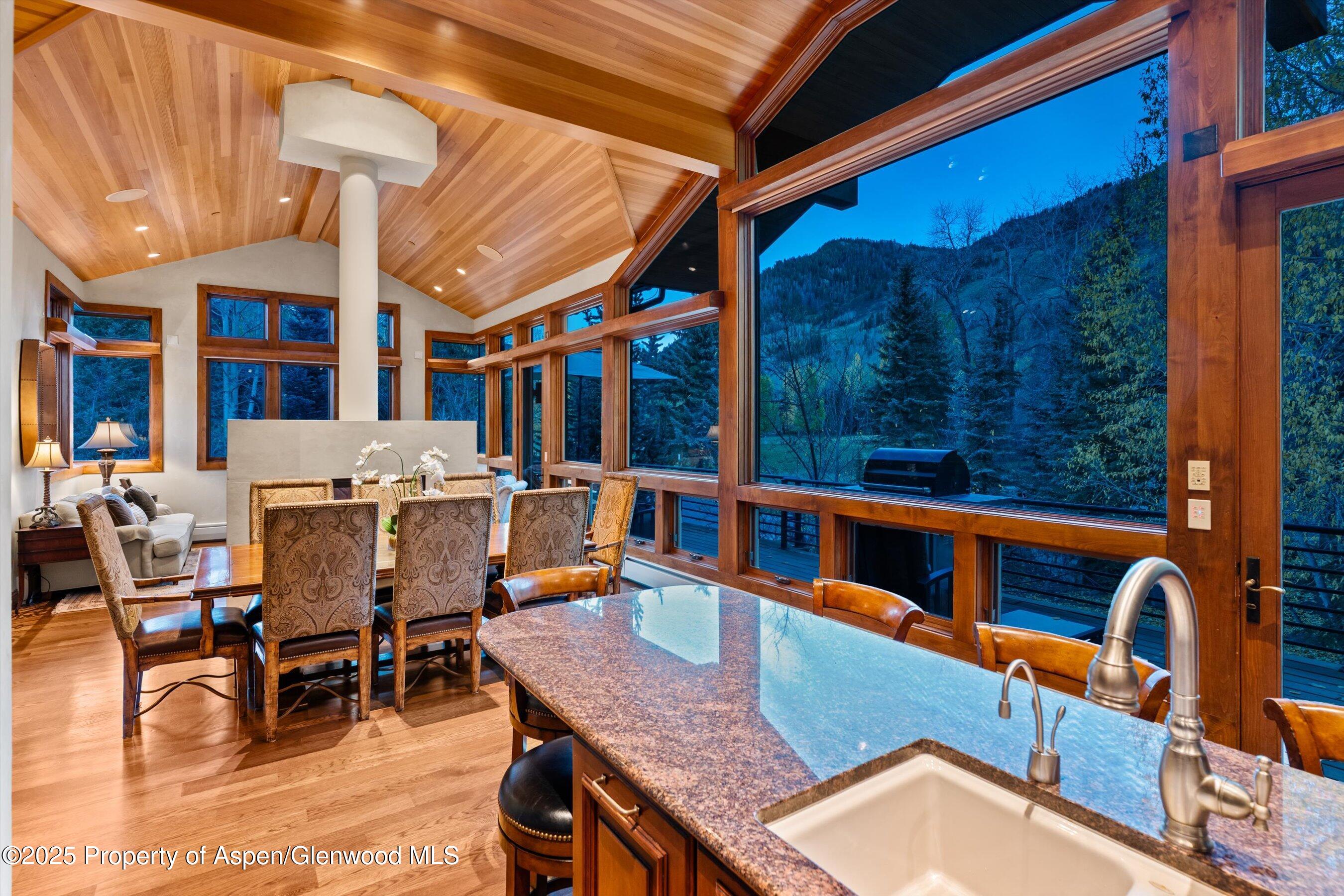 Located just three blocks from Aspen's downtown commercial core on a quiet residential street this is the perfect downtown home for your Aspen retreat. Enjoy your morning coffee while watching the Gondola run on Aspen Mountain. Spend time with your friends and family while food is prepared in the upstairs kitchen featuring an open floor plan conducive to mingle between the kitchen, open dining and living areas. Primary suite is upstairs with an adjacent office. The middle level is comprised of two guest suites, kitchenette and media room. The downstairs recreational area offers a pool table, exercise equipment, bunk room with a jack and Jill bath to the fifth bedroom. The bedding is: King, King, Queen, Queen, Bunk with Two Twins STRC 083468