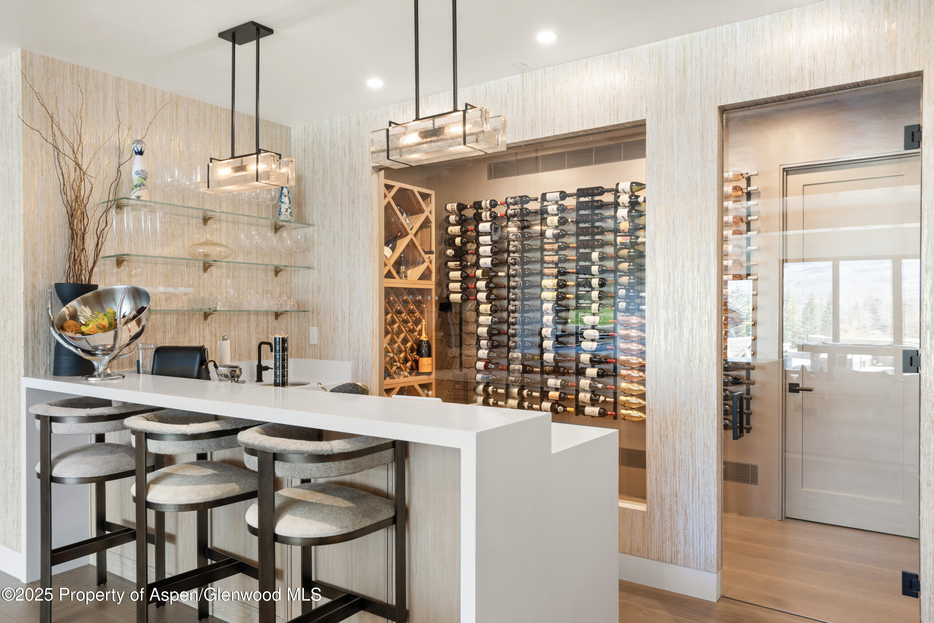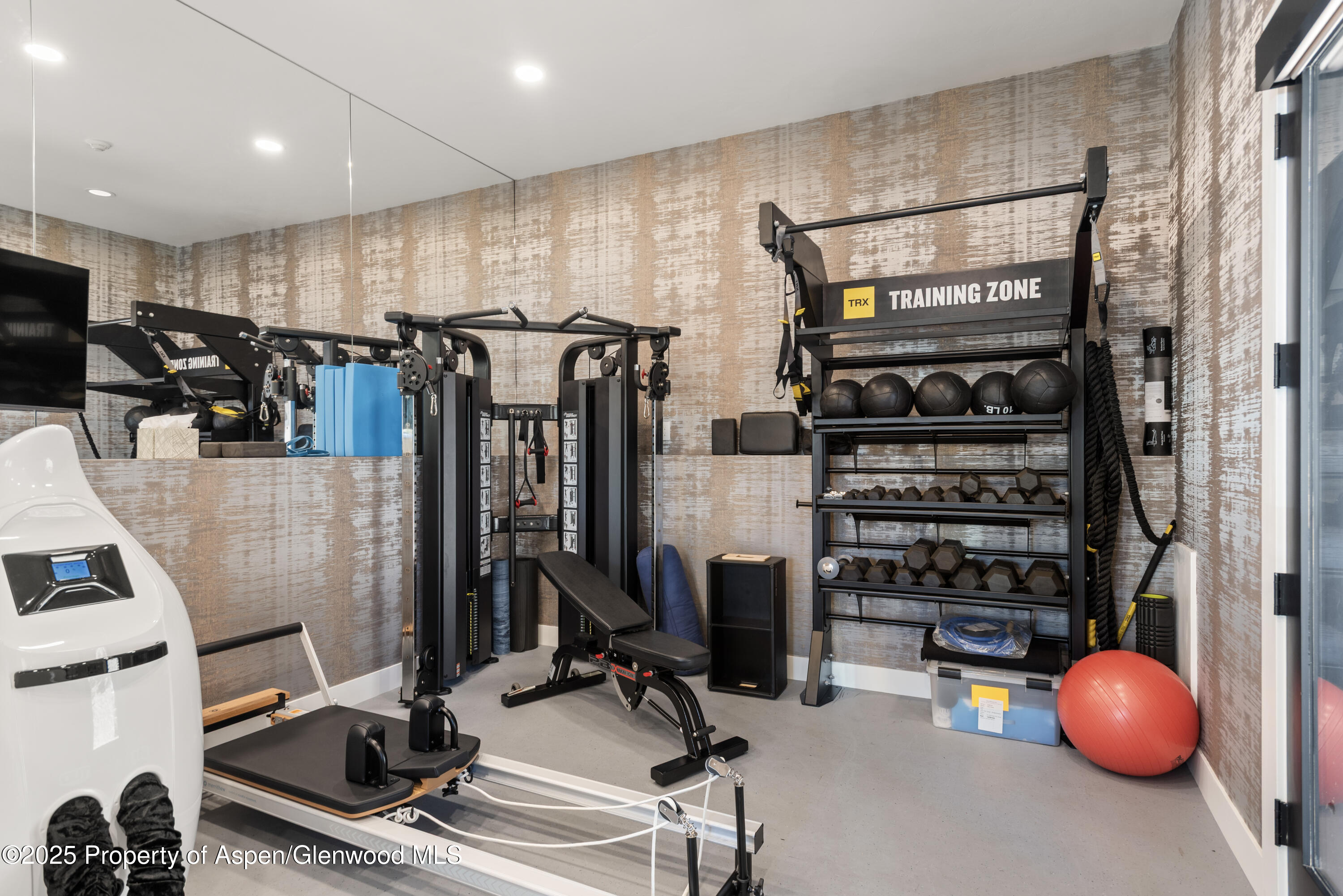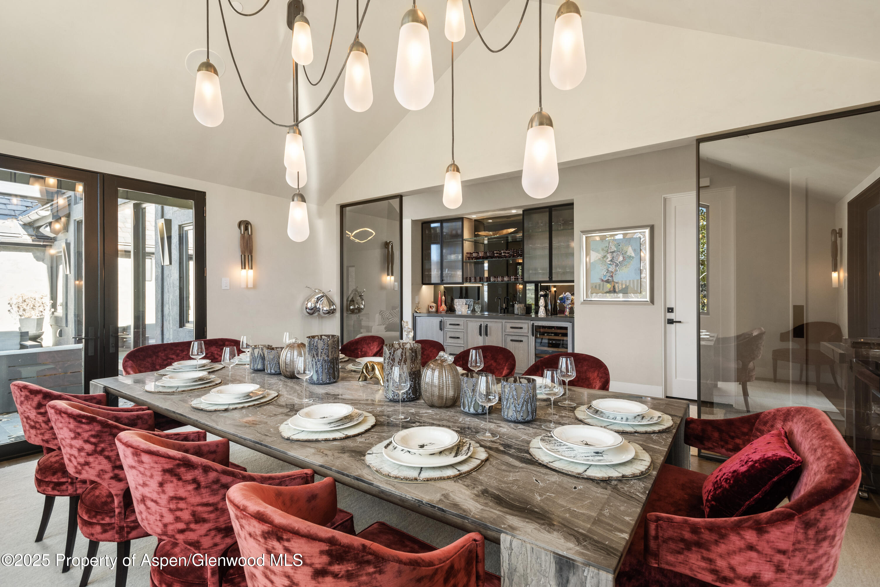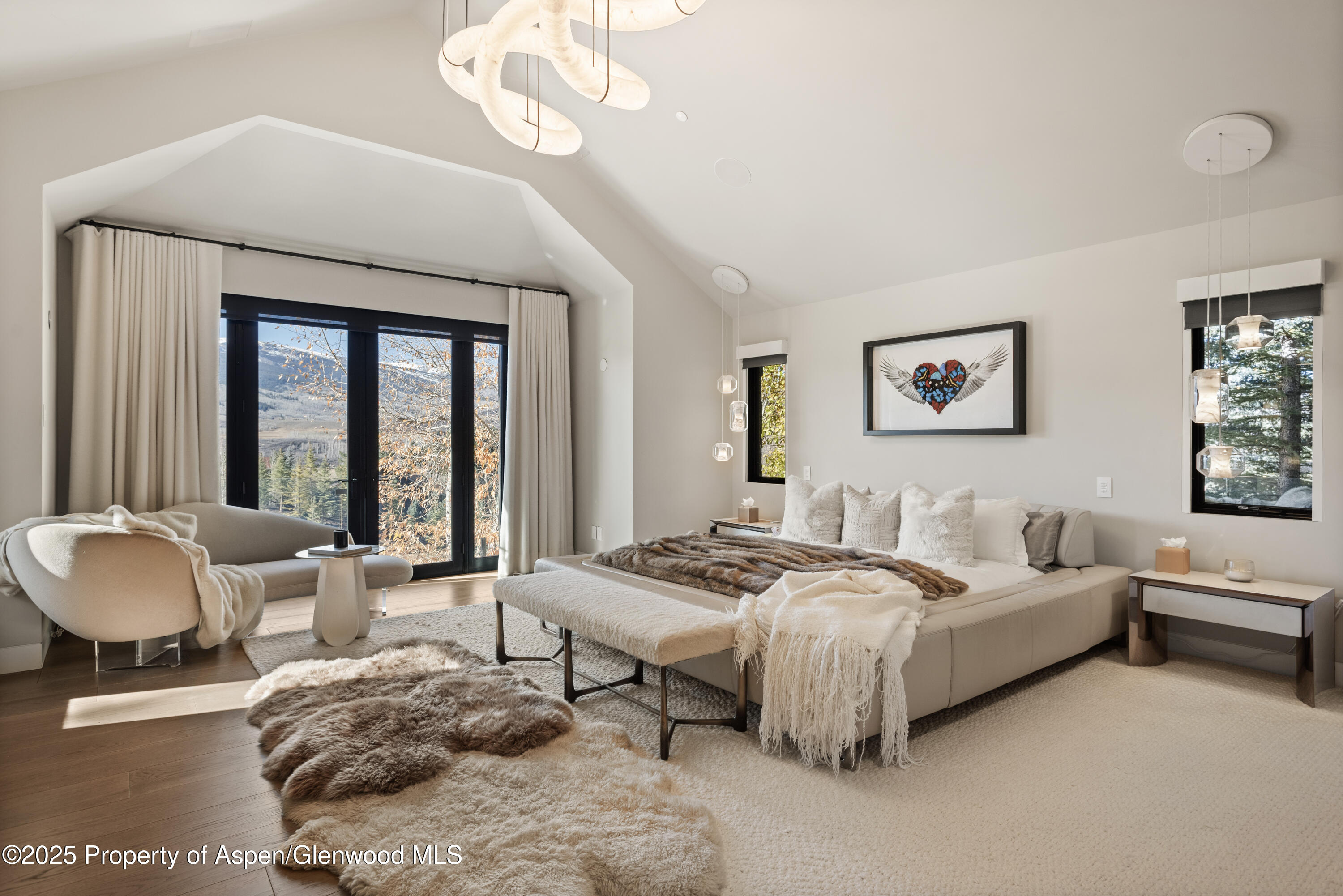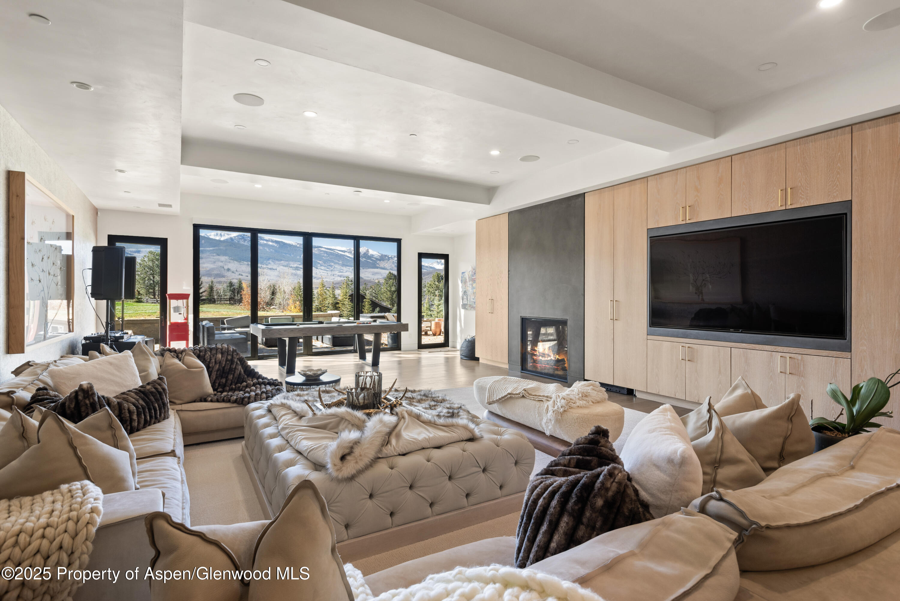 Unparalleled Elk Mountain views from this exquisite 6 bedroom, 8 bathroom contemporary estate. Upon entering the home, you're welcomed by an impressive great room with a floor-to-ceiling fireplace, vaulted ceilings, and large glass doors and windows showcasing the breathtaking views. The primary suite is conveniently located on the main level with a spa-like bathroom, private balcony, indoor and outdoor fireplaces, office, and a custom walk-in closet. Additional highlights include a spectacular chef's kitchen with indoor and outdoor dining areas, grill, hot tub, and generously sized family room outfitted with a pool table & bar. Complete with a separate caretaker apartment and private gym. AC throughout. Moments from your favorite hiking trails, Aspen Institute, Music Festival, and everything downtown Aspen has to offer.