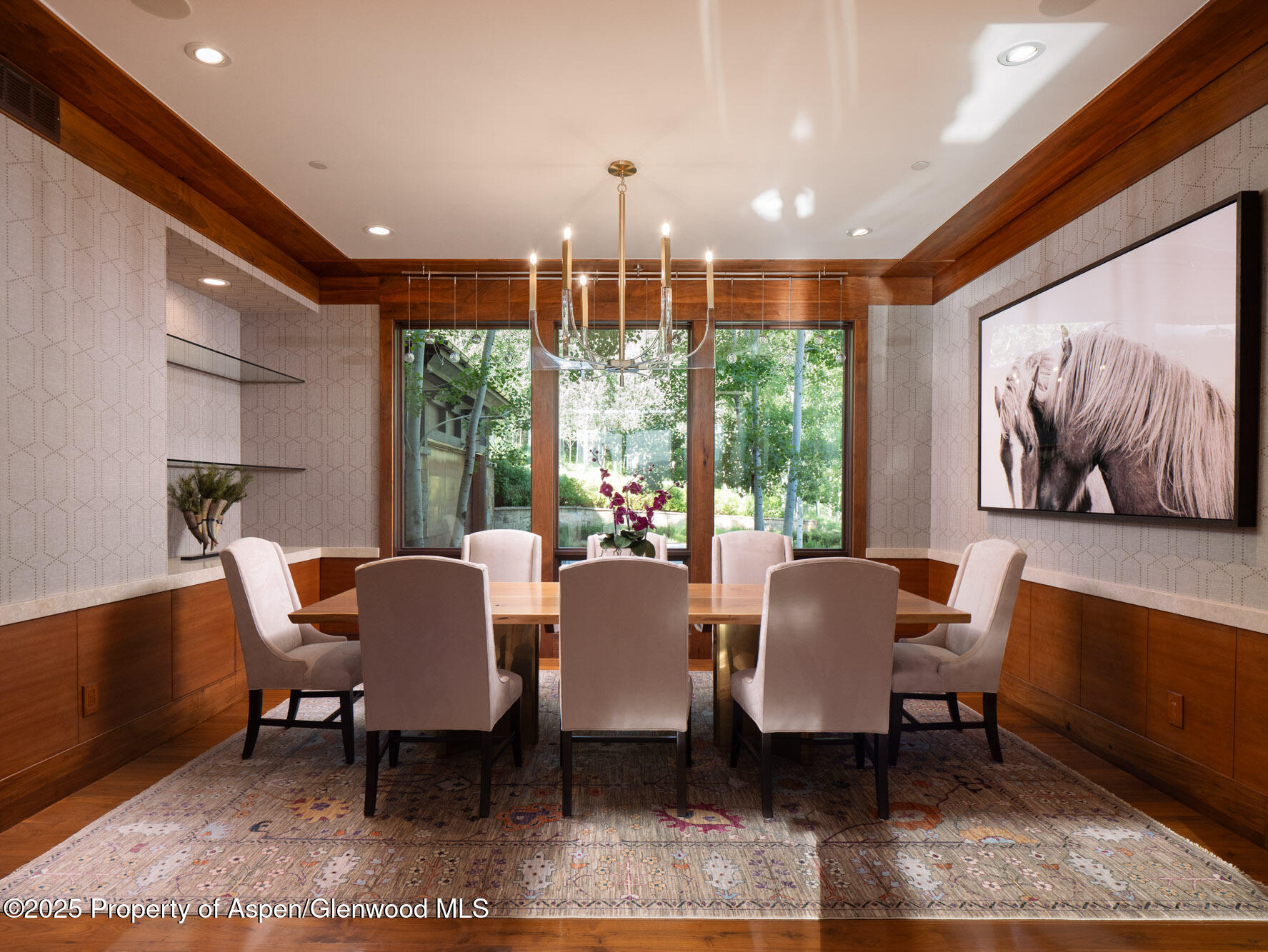 This impeccably built and perfectly maintained custom contemporary home sits on a private 2 acre lot in Starwood, Aspen's only gated community. The home backs up to White River National Forest Service land where your only neighbors are deer and elk. The 5,200+- sq ft, 5 bedroom, 5 1/2 bath home features too many custom details to list; walnut flooring, cherry and mahogany cabinetry, 5 gas fireplaces and custom rugs and furnishings just to name a few. The massive west facing patio features a built-in hot tub, cascading waterfalls, a large fire pit, and a custom outdoor kitchen. Total privacy, amazing views of the Snowmass Ski Area and the Elk Mountain Range and all day sunshine give way to starlit nights making this an opportunity not to be missed!