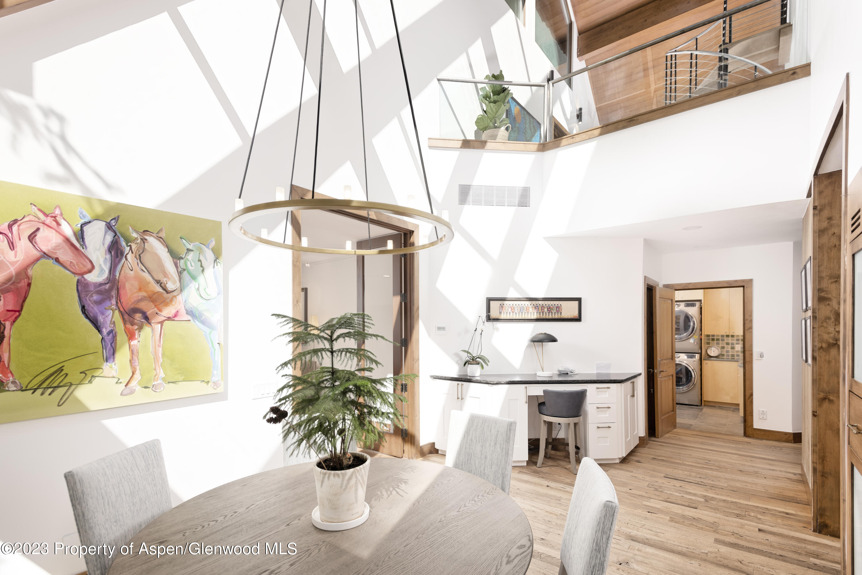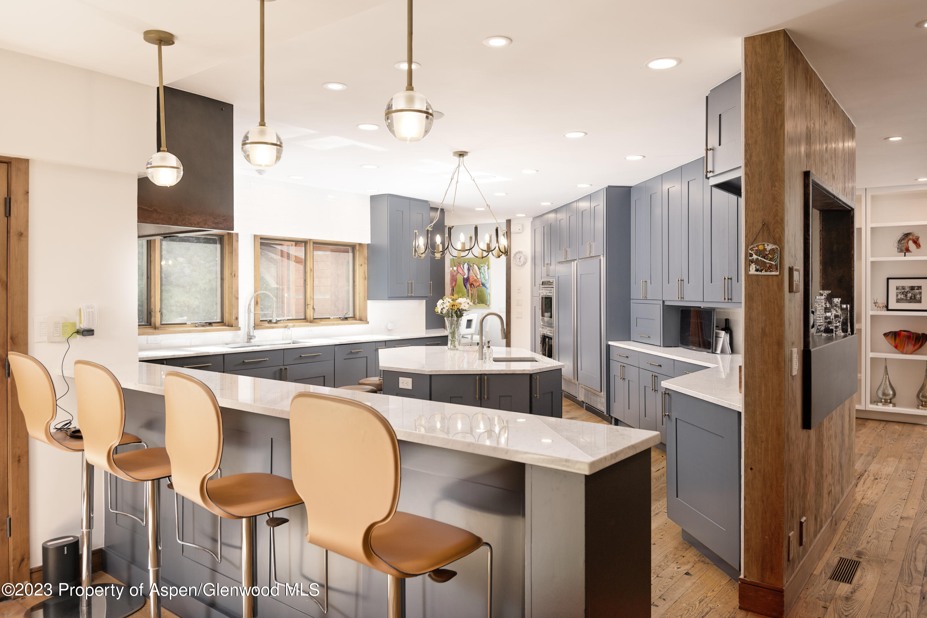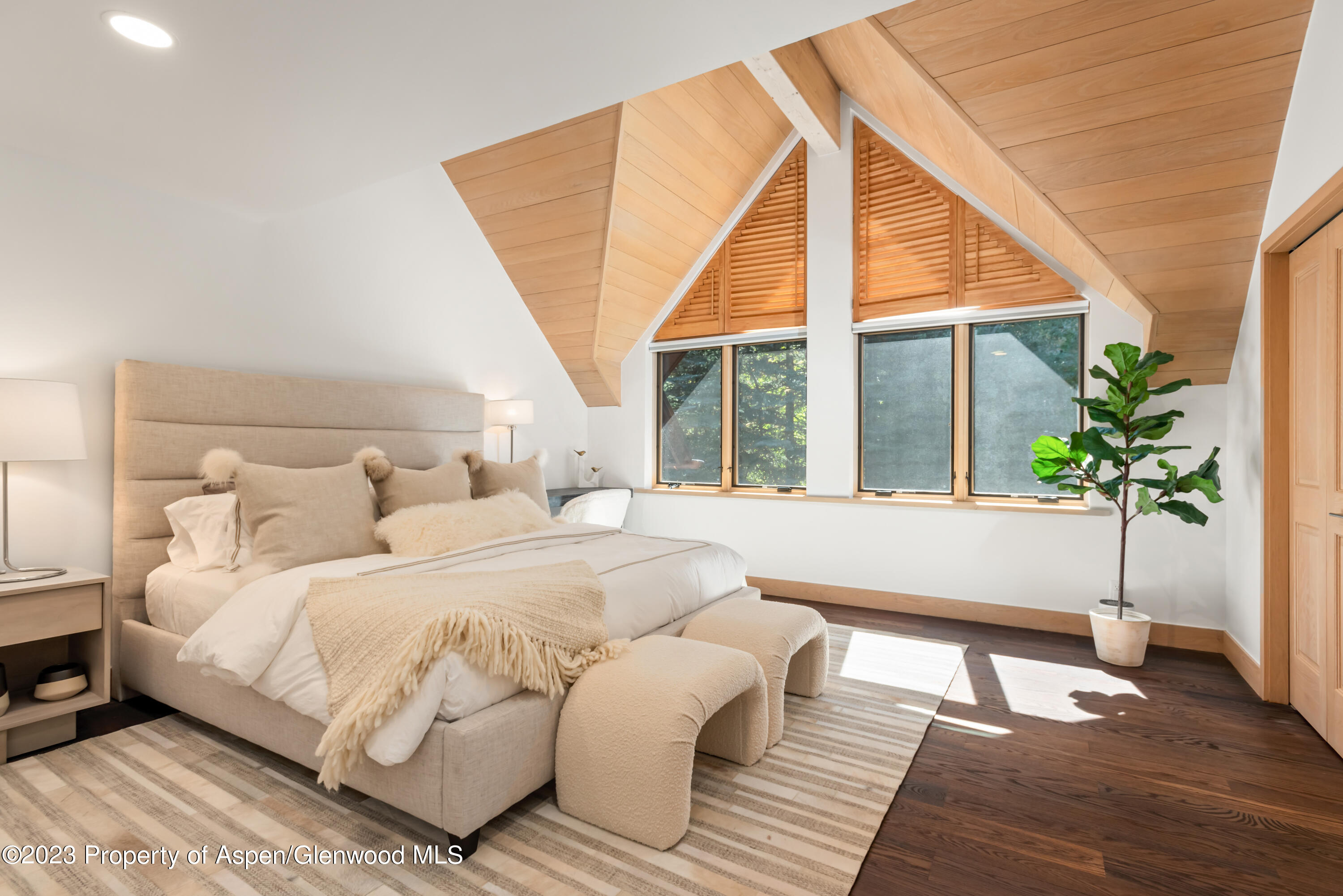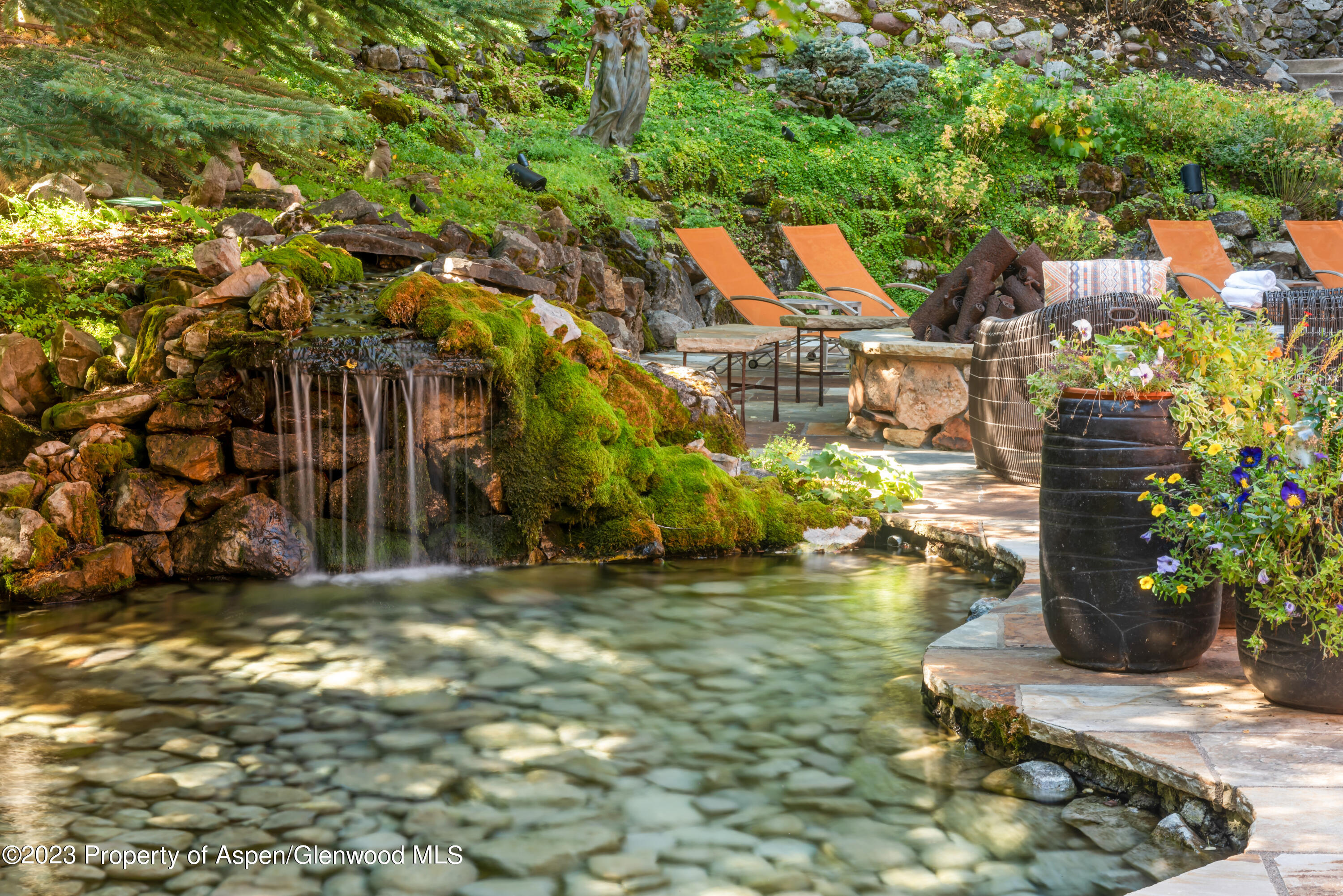 This private enclave is nestled at the base of Aspen Mountain with true ski-in access and easy walk out access right onto Ajax. The sprawling main level offers abundant natural light from skylights and floor-to-ceiling sliders that lead out to a fenced-in side yard and separately to a fenced in backyard with oversized patio. A tranquil, private pond and stream run through the backyard all year round. Additional outdoor features include an in-ground hot tub, fire pit, grill, and a path down to a shared, flat yard and swing set, all enveloped by mature trees and landscaping. Inside the open-living floor plan you can cozy up by the two-sided fireplace, cook and entertain in the gourmet kitchen, or relax in the second, private den. Upstairs you will find a private Primary bedroom wing with large, walk-in closet, his and hers bathrooms complete with a steam shower and soaking tub, in closet W/D and private outdoor patio with gondola views! Three additional bedroom suites and one lofted bedroom suite situated up its own private spiral staircase. On the lowest level you will find the 6th bedroom suite, a gym, wet bar, shuffleboard, foosball and entertainment/ media area, perfect for entertaining year round. 1 Bay in a 2-car garage included. 2nd bay may be negotiated at the time of an offer. *This property also features a separate guest house with 2 additional bedrooms and en suite bathrooms to total 8 Bedrooms and sleeping up to 16 people. Guest house is not included in pricing and may be available for parts of the year. Please inquire directly with desired dates for guest house rates.